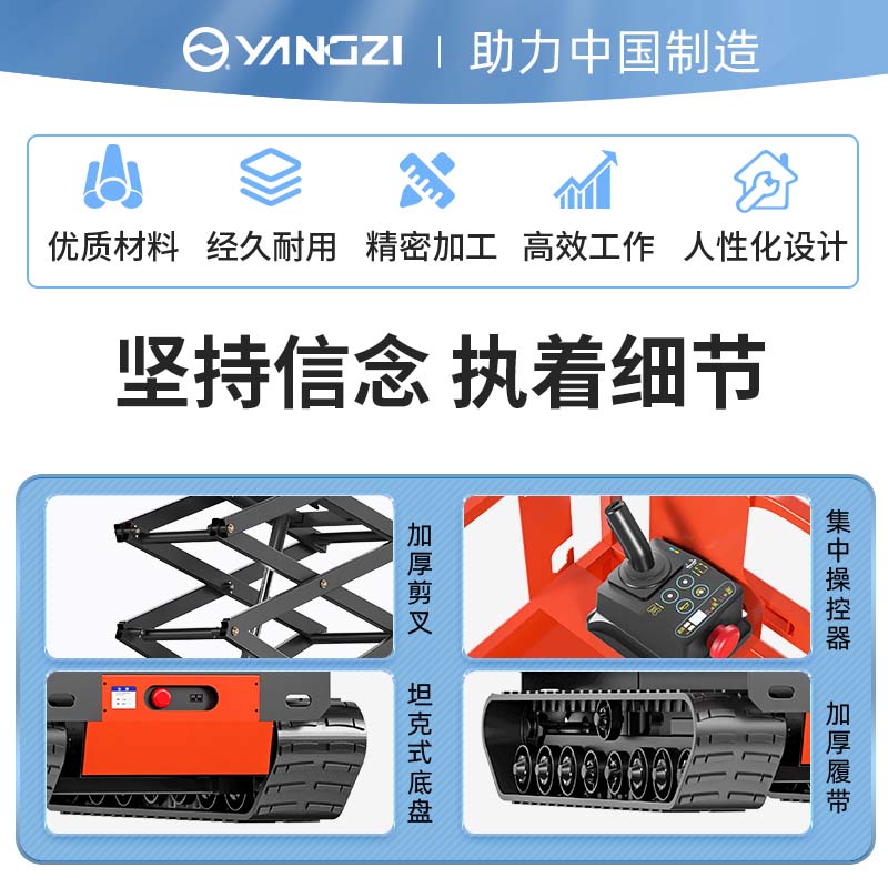 揚(yáng)子履帶式升降平臺(tái)SJY0:結(jié)構(gòu)穩(wěn)定,耐磨耐用,適應(yīng)能力強(qiáng),而且簡(jiǎn)單操作更方便快捷。升降平臺(tái)就選揚(yáng)子
