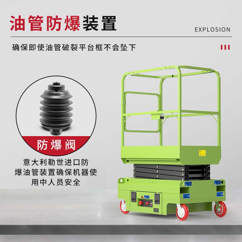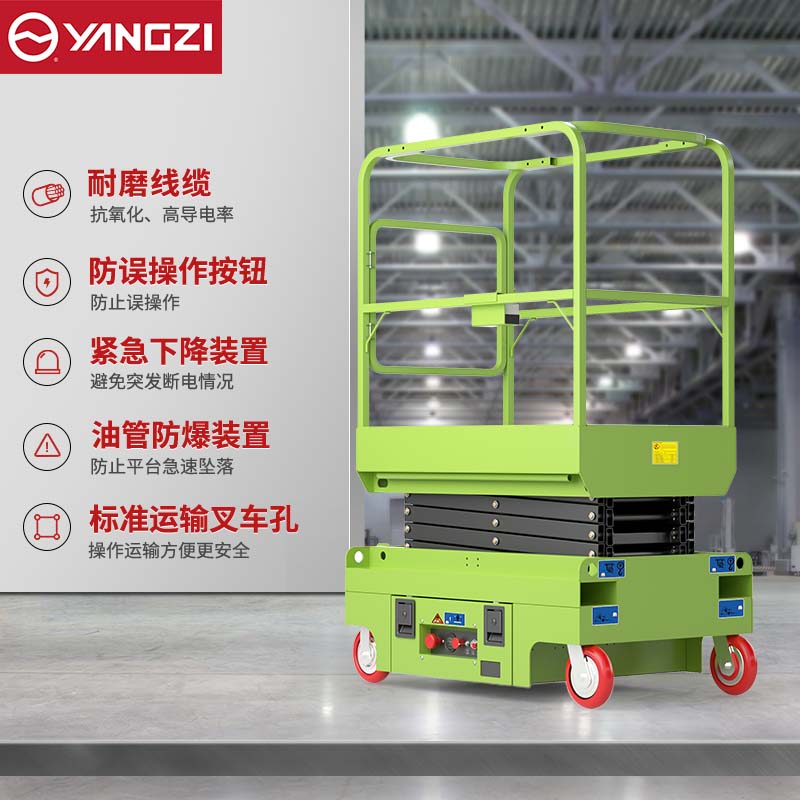揚(yáng)子升降機(jī)手推剪叉式升降平臺JCPT:移動方便,防爆裝置確保即使油管爆裂平臺框不會墜下