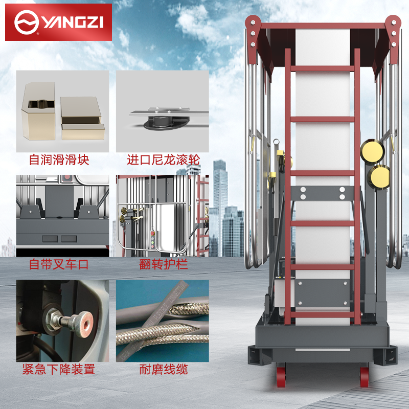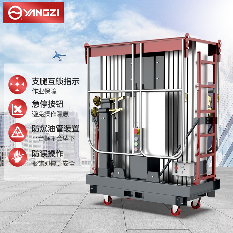 揚(yáng)子高配雙柱鋁合金升降機(jī)YZGS2:擁有雙電源操作平臺(tái),防誤操作按鈕更安全,多場景使用,可以商用維護(hù)物業(yè)維護(hù)工業(yè)安裝等。