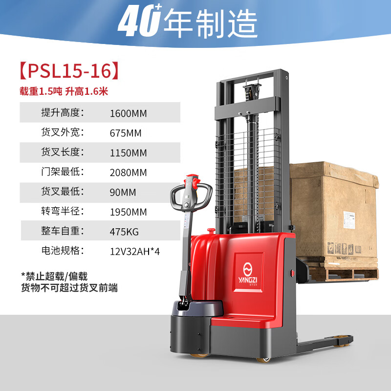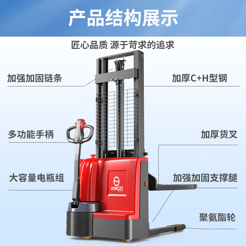 揚(yáng)子電動(dòng)堆高車升降叉車PSL1516-1.5噸升高1.6米,加厚C+H型鋼門架,優(yōu)質(zhì)加厚寶鋼,穩(wěn)固承重強(qiáng)