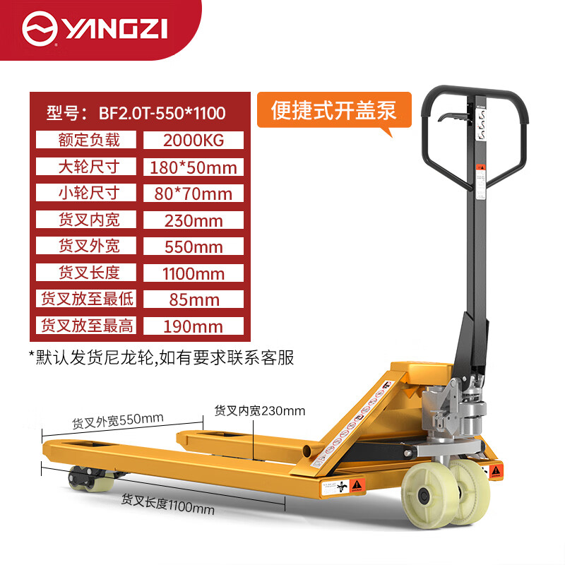 揚(yáng)子手動叉車地牛搬運(yùn)車YZ-BF(圖2)