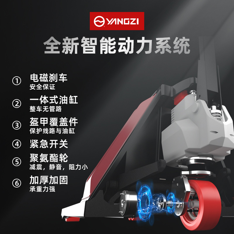 揚子搬運車QBM:全新智能動力系統(tǒng),電磁剎安全有保障,一體式油缸整車無管路,加厚加固承載力強,電動行走輕松搬運。BMS管理系統(tǒng),持久續(xù)航。